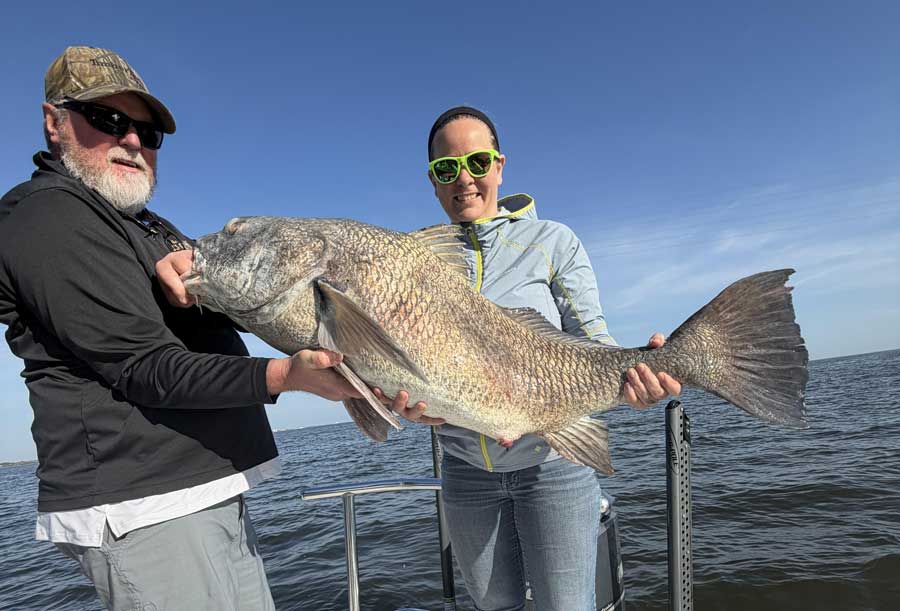 On calm days, look for schools pushing water and cast a shrimp just in front of them. This will typically reward you with a nice black drum or redfish. Trout have been in the deeper areas; a jig head with a Z-Man shrimp imitation, or a gulp shrimp will usually do the trick. I have Wednesday still available this week and several days available in March.